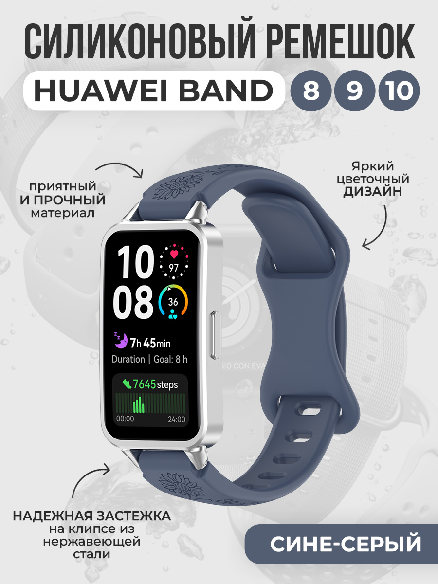 Силиконовый ремешок с рисунком для Huawei Band 8/9/10, сине-серый