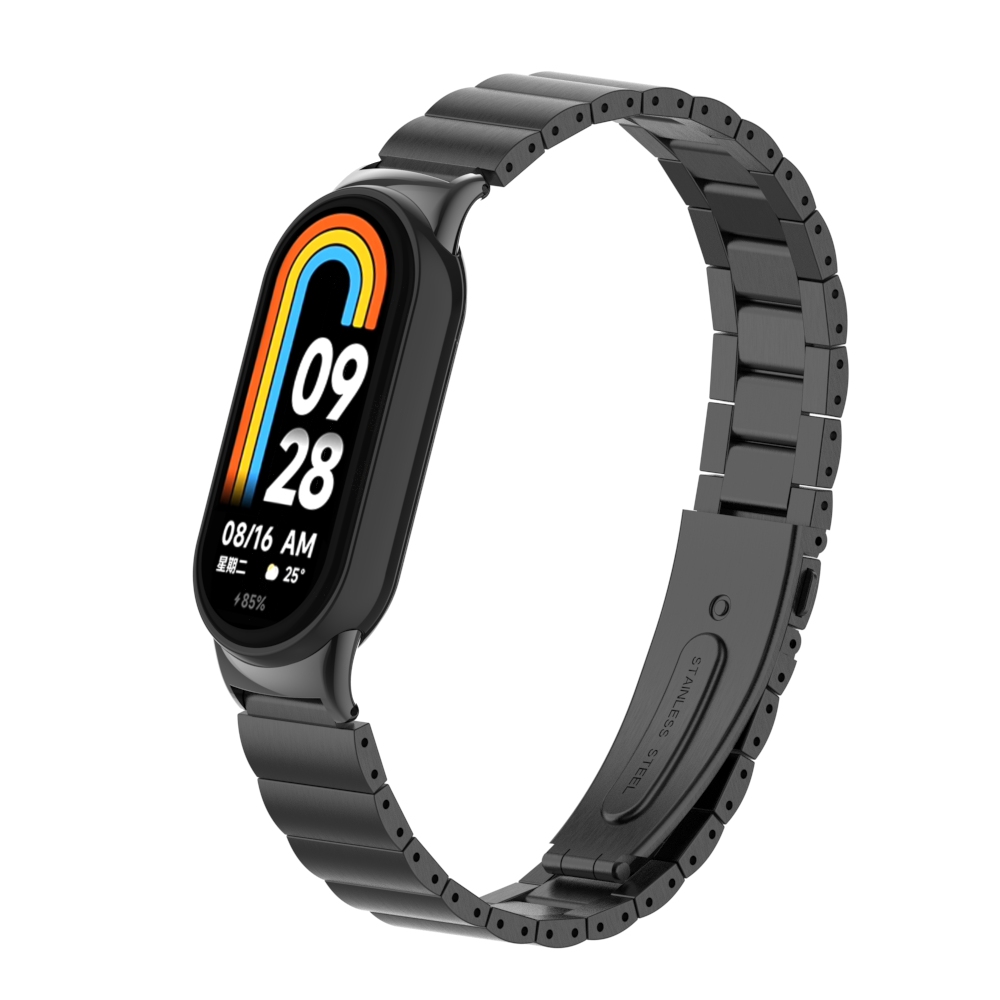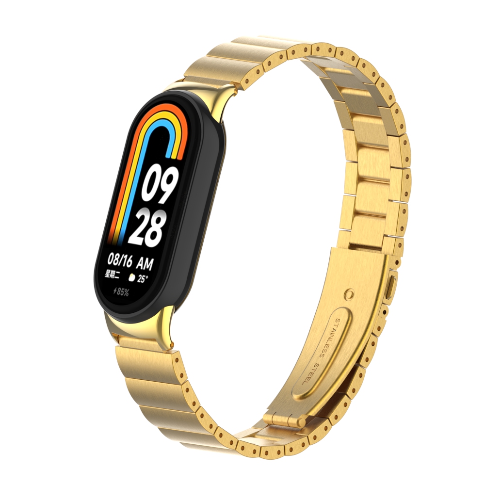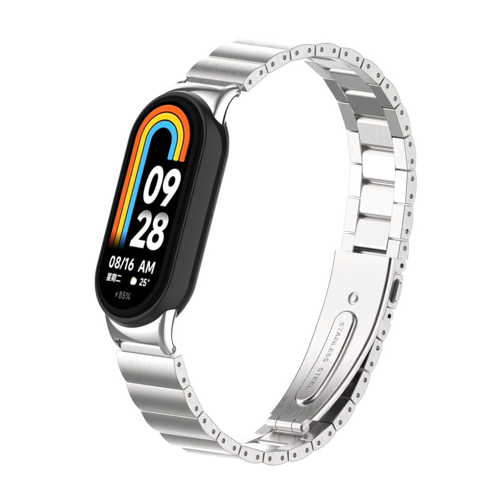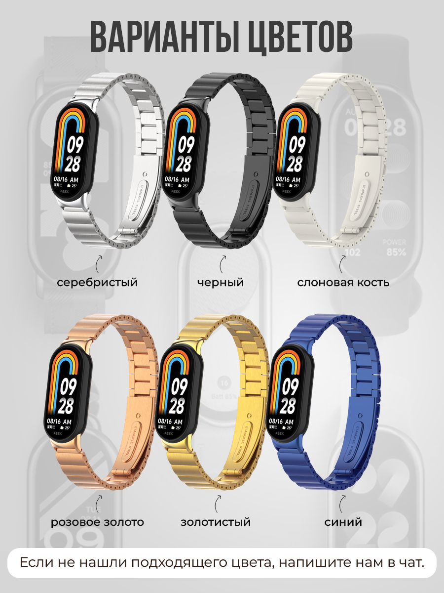Этот металлический ремешок для Xiaomi Smart Band 8/9/10 создан для тех, кто ценит стиль и долговечность. Он совместим с устройствами Ксяоми смарт бенд 8 и ксиаоми смарт 9, а также с моделью ксяоми бенд 10 лагодаря универсальному коннектору и продуманной детализации. Использование нержавеющей стали в сочетании с прочной рабочей фурнитурой обеспечивает исключительную стойкость к повседневному износу, сохраняет безупречный вид даже при активном использовании. Ремешок не только хорошо держится на запястье, но и визуально подчеркивает стиль пользователя: от повседневного урбан-лайфа до более формальных выходов. Конструкция ремешка выполнена из высококачественной нержавеющей стали, что гарантирует устойчивость к царапинам и коррозии. Такая металлическая основа обеспечивает долгий срок службы и стойкость к механическим воздействиям, что особенно важно для активной аудитории, бережно относившейся к своему гаджету. Благодаря продуманной эргономике он удобно сидит на запястье и не вызывает дискомфорта даже при длительном ношении. Широкий диапазон регулировки позволяет подобрать оптимальную посадку под любую толщину запястья, а замок с безопасной фиксацией надежно удерживает ремешок в нужном положении.