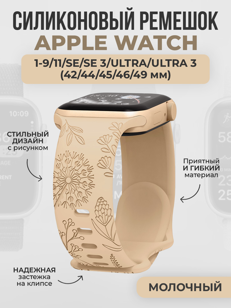 Силиконовый ремешок с рисунком для Apple Watch 1-9 / SE / ULTRA (42/44/45/46/49 мм), молочный
