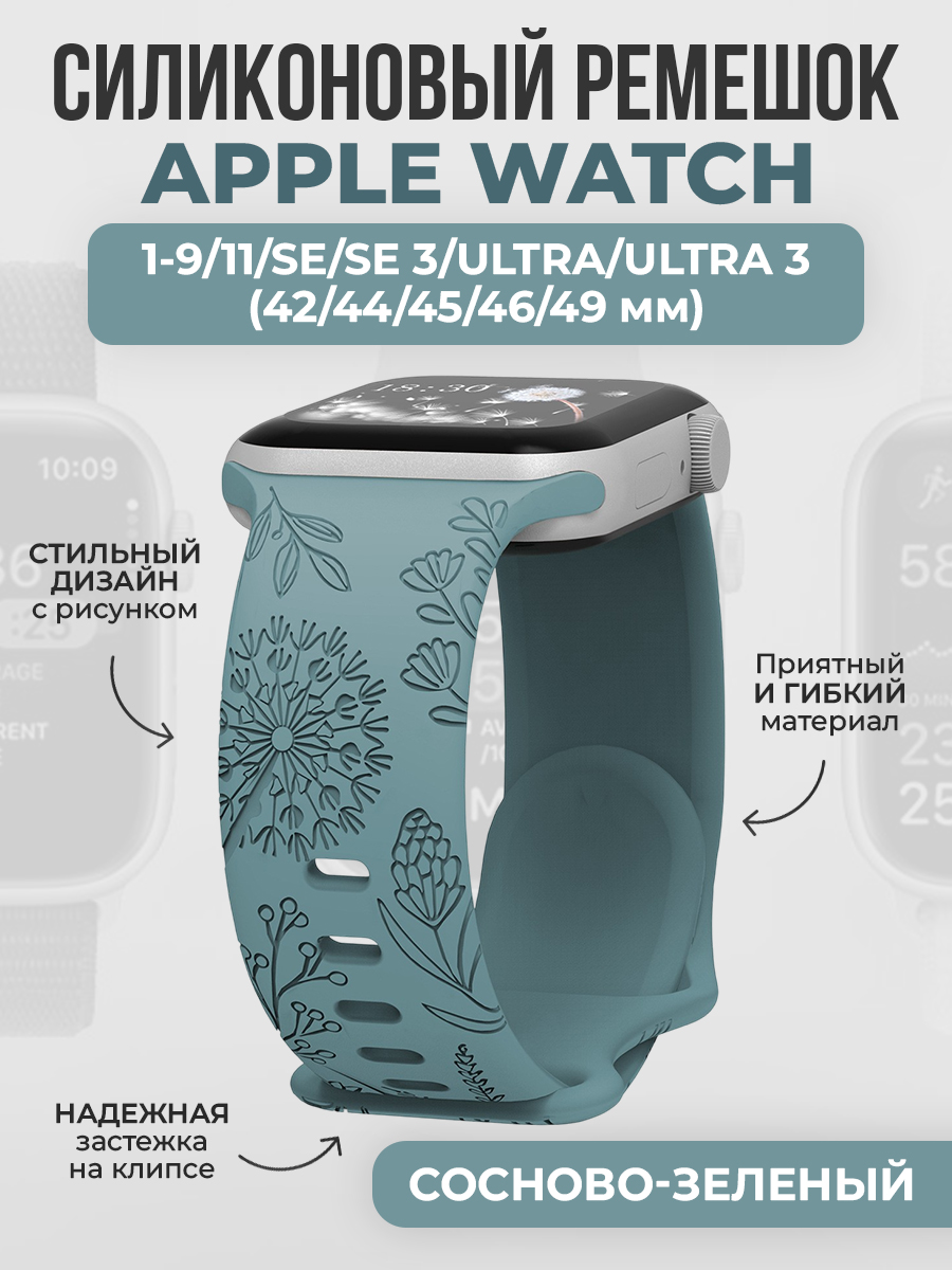 Силиконовый ремешок с рисунком для Apple Watch 1-9 / SE / ULTRA (42/44/45/46/49 мм), сосново-зеленый