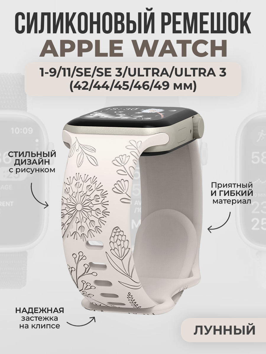 Силиконовый ремешок с рисунком для Apple Watch 1-9 / SE / ULTRA (42/44/45/46/49 мм), лунный