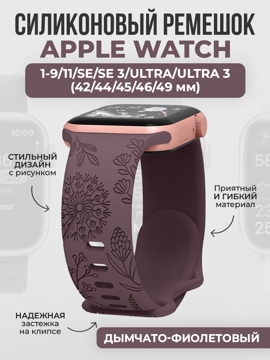 Силиконовый ремешок с рисунком для Apple Watch 1-9 / SE / ULTRA (42/44/45/46/49 мм), дымчато-фиолетовый