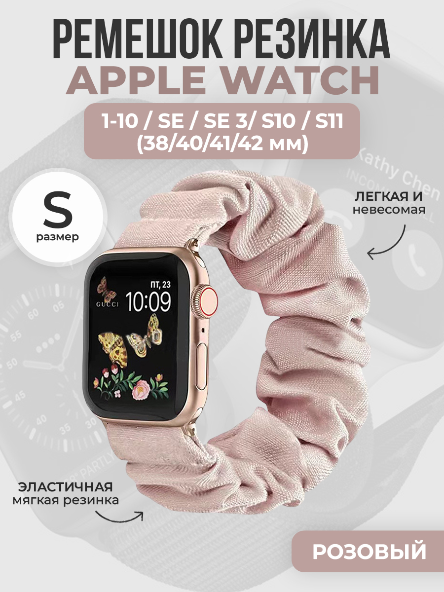Ремешок резинка для Apple Watch 1-9 / SE / SE 3 (38/40/41 мм), 11/S10/S11, 42мм, размер S, розовый