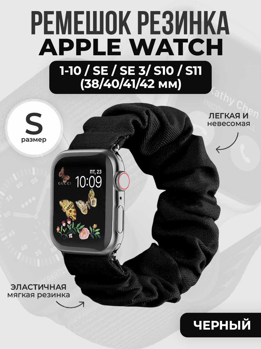 Ремешок резинка для Apple Watch 1-9 / SE / SE 3 (38/40/41 мм), 11/S10/S11, 42мм, размер S, черный
