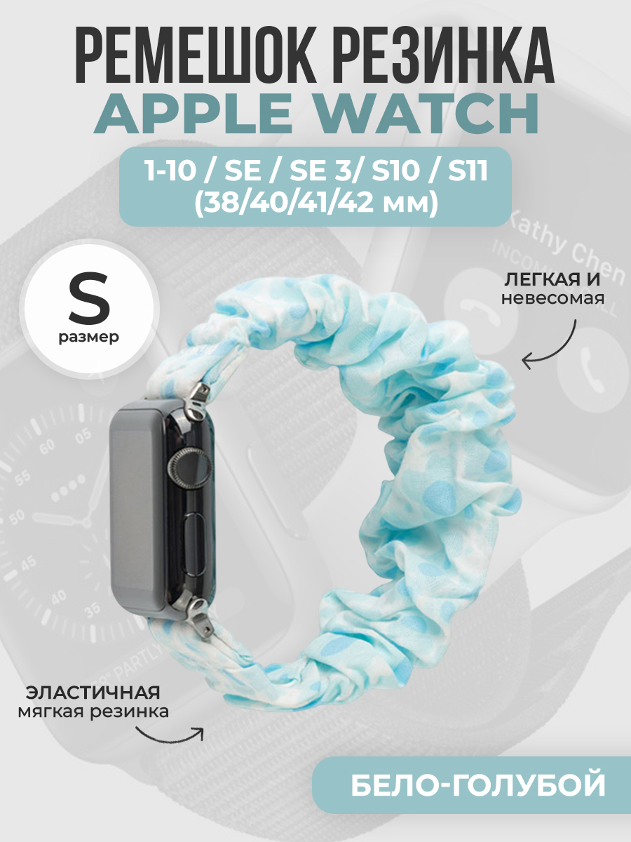 Ремешок резинка для Apple Watch 1-9 / SE / SE 3 (38/40/41 мм), 11/S10/S11, 42мм, размер S, бело-голубой