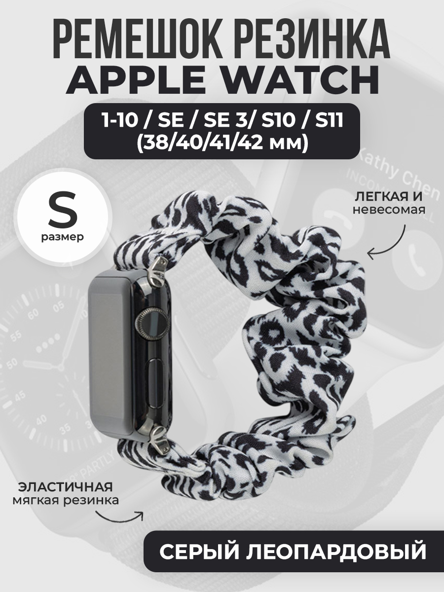 Ремешок резинка для Apple Watch 1-9 / SE / SE 3 (38/40/41 мм), 11/S10/S11, 42мм, размер S, серый леопардовый