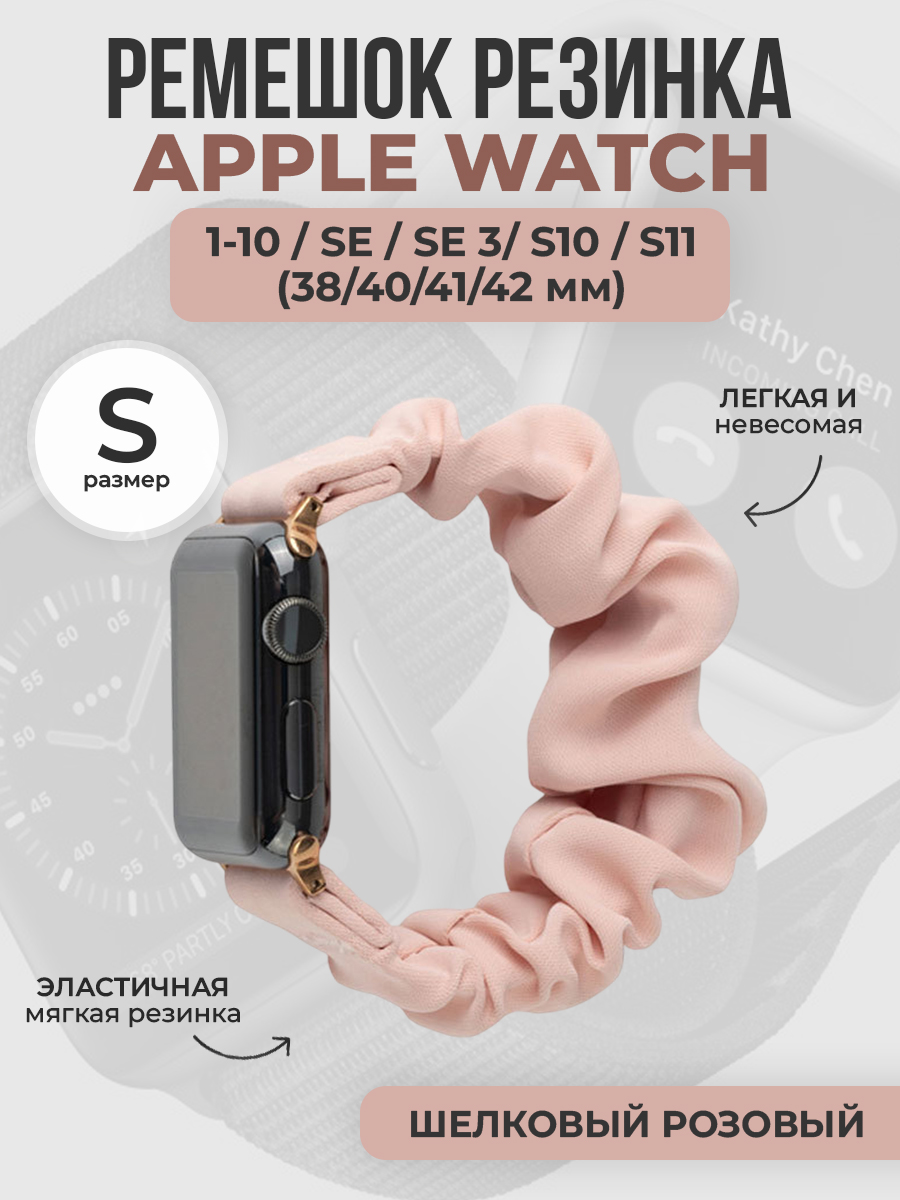 Ремешок резинка для Apple Watch 1-9 / SE / SE 3 (38/40/41 мм), 11/S10/S11, 42мм, размер S, шелковый розовый