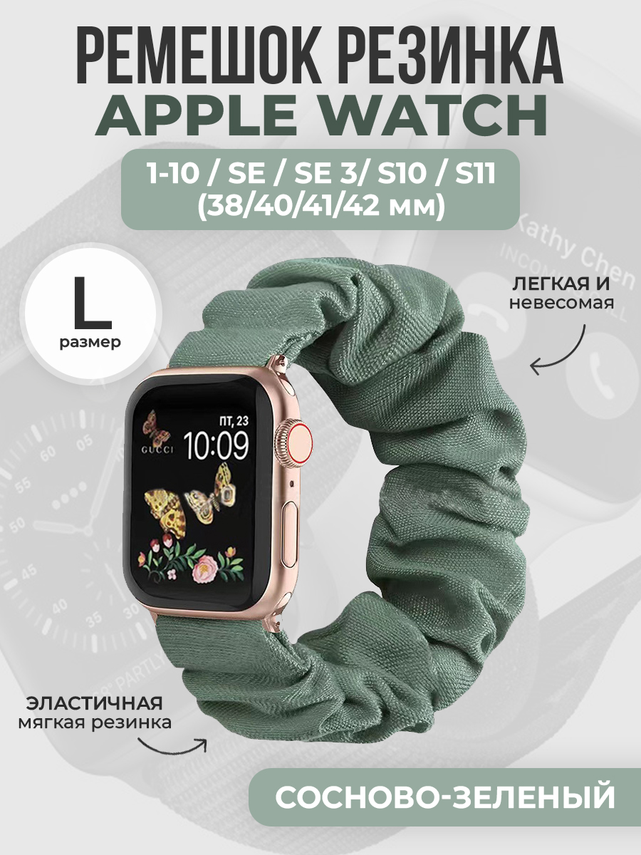 Ремешок резинка для Apple Watch 1-9 / SE (38/40/41мм) / S10 (42мм), размер L, сосново-зеленый