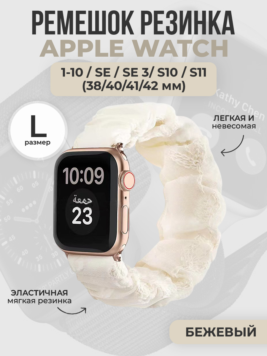 Ремешок резинка для Apple Watch 1-9 / SE (38/40/41мм) / S10 (42мм), размер L, бежевый