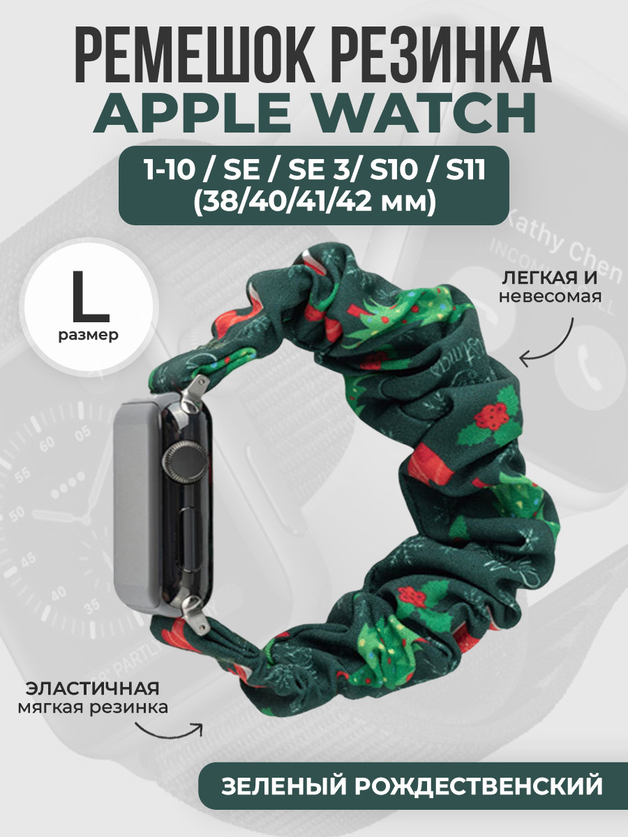 Ремешок резинка для Apple Watch 1-9 / SE (38/40/41мм) / S10 (42мм), размер L, зеленый рождественский