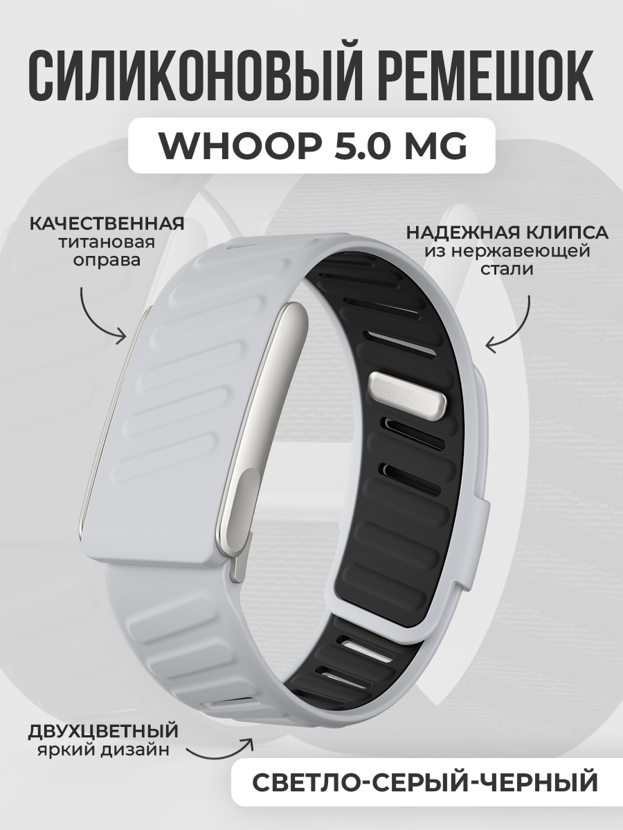 Двухцветный силиконовый ремешок для WHOOP 5.0 MG, светло-серый-черный