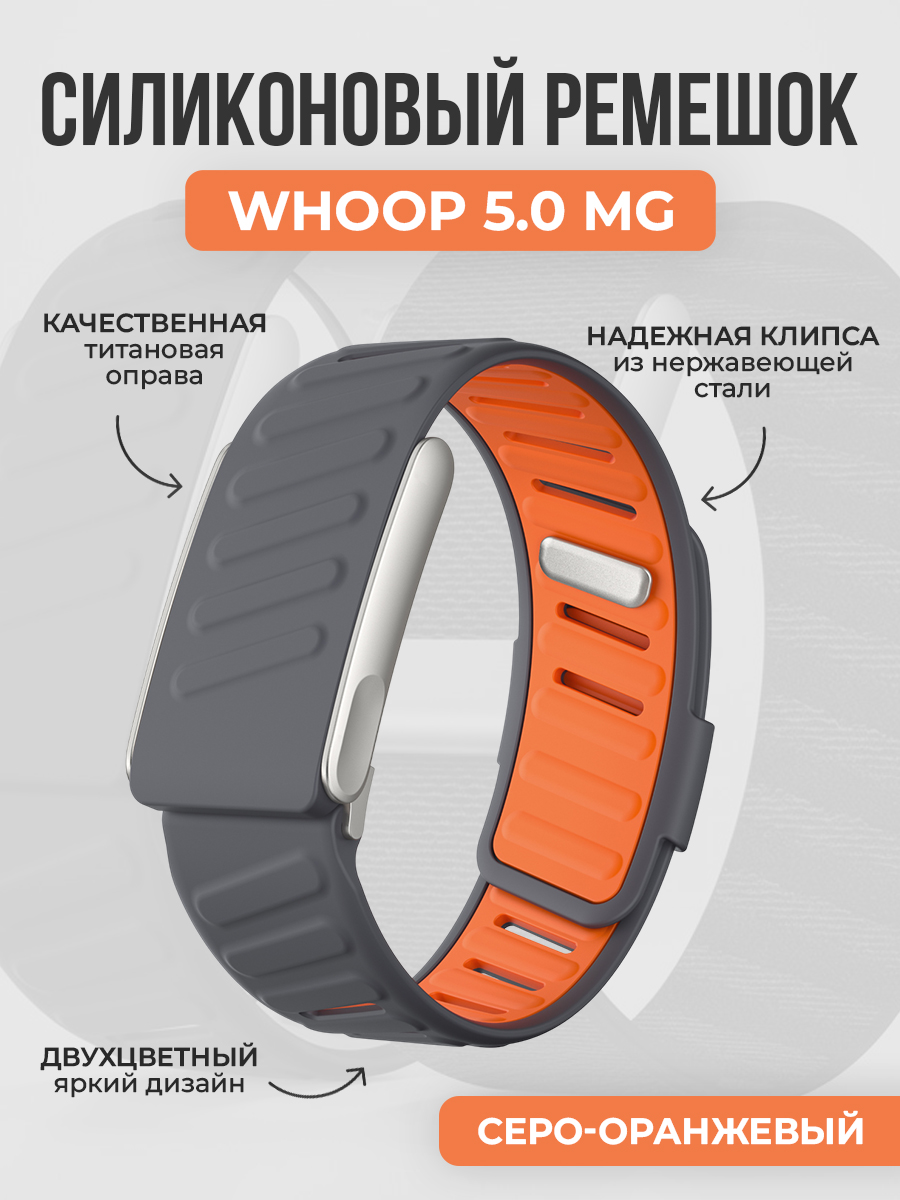 Двухцветный силиконовый ремешок для WHOOP 5.0 MG, серо-оранжевый