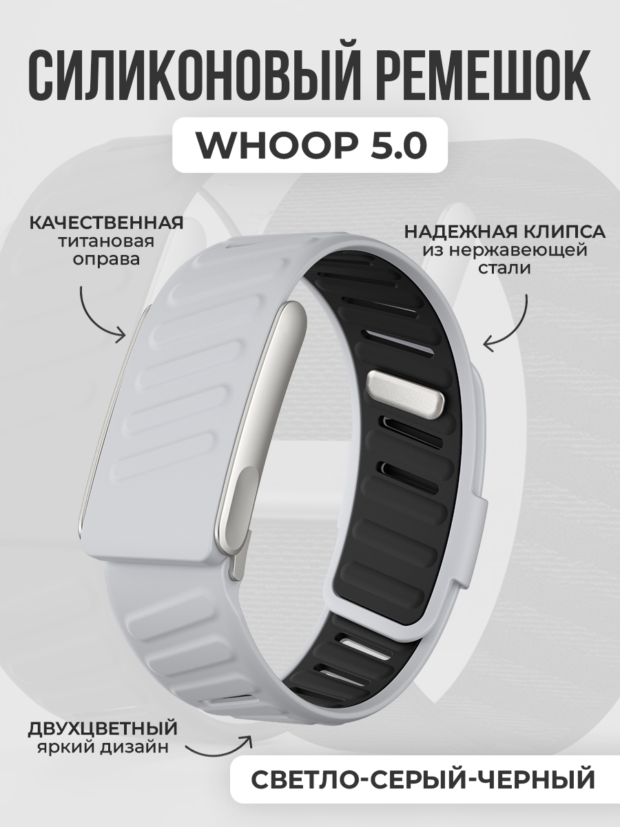 Двухцветный силиконовый ремешок для WHOOP 5.0, светло-серый-черный