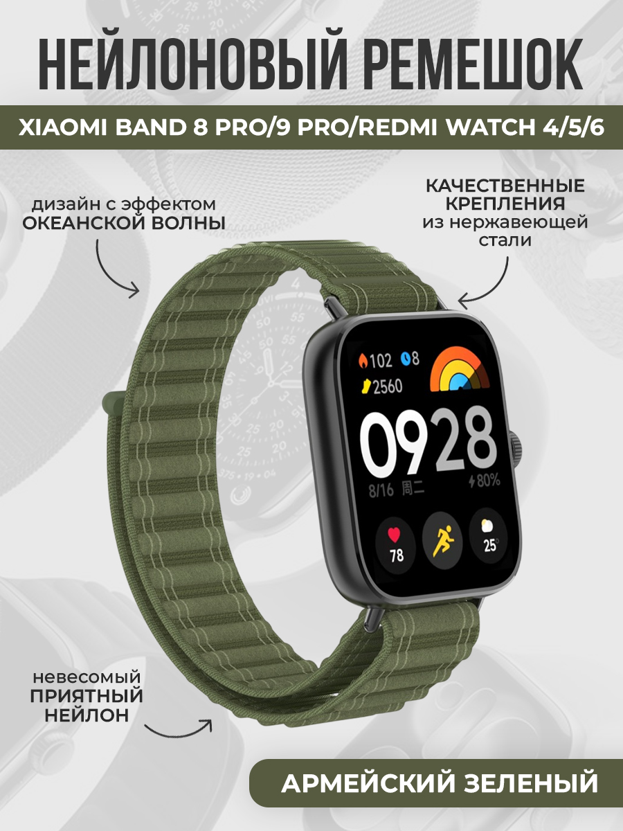 Нейлоновый ремешок океанская волна для Xiaomi Band 8 Pro/9 Pro/Redmi Watch 4/5/6, армейский зеленый