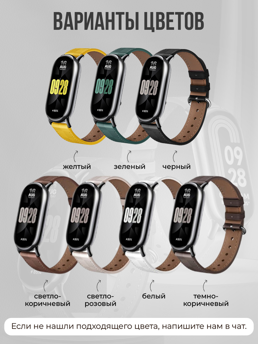 Кожаный ремешок с узором для Xiaomi Smart Band 8/9/10 — стильное и практичное обновление для вашего носимого гаджета. Этот ремешок создан специально для Ксяаоми смарт бенд 8 и Ксяаоми смарт бенд 9, чтобы подарить устройству новый облик и увеличить комфорт повседневного ношения. Если вы хотите подчеркнуть индивидуальность, повысить прочность и сохранить элегантность в любых ситуациях — этот ремешок станет идеальным выбором.