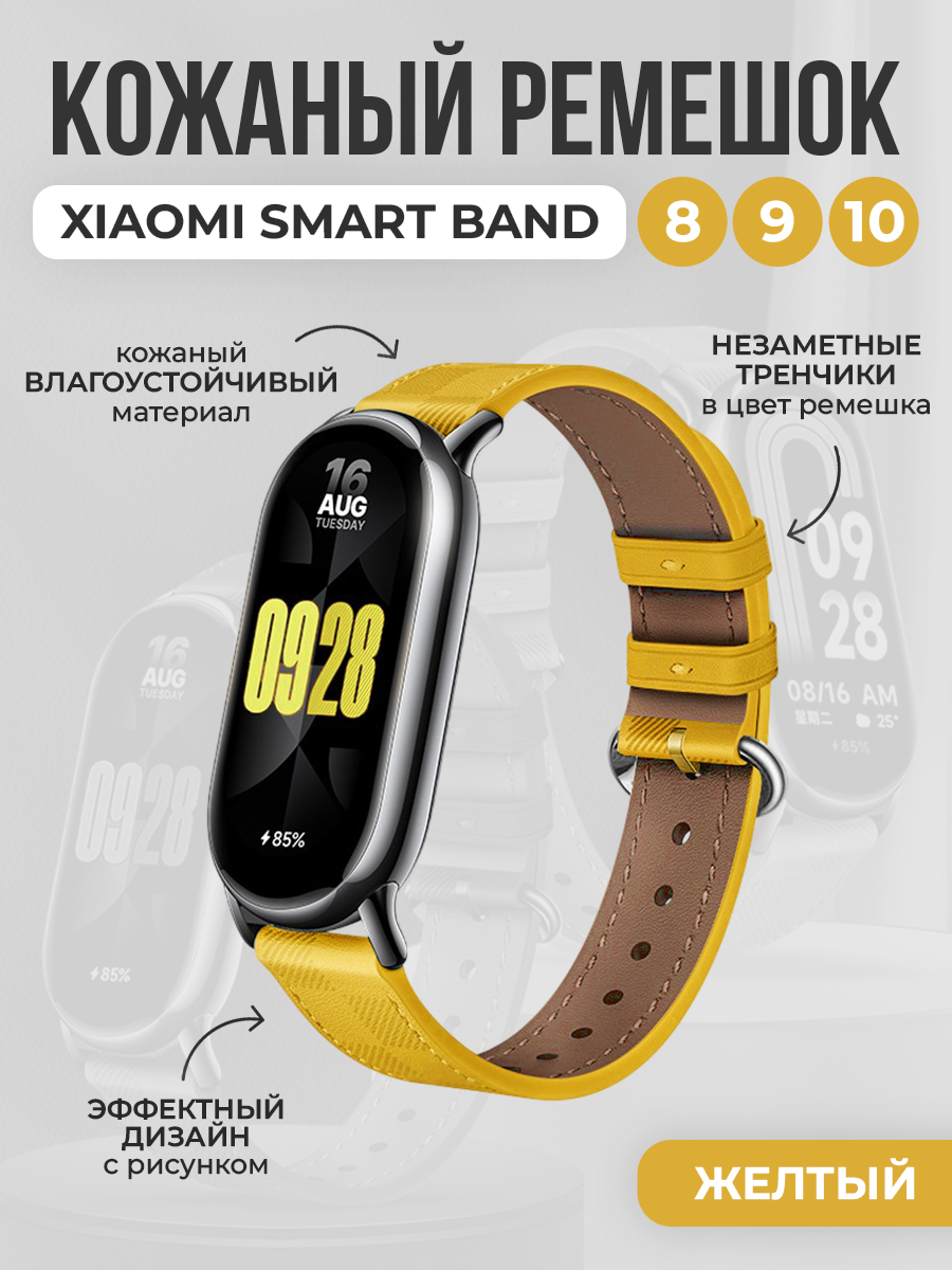 Кожаный ремешок с узором для Xiaomi Smart Band 8/9/10, желтый