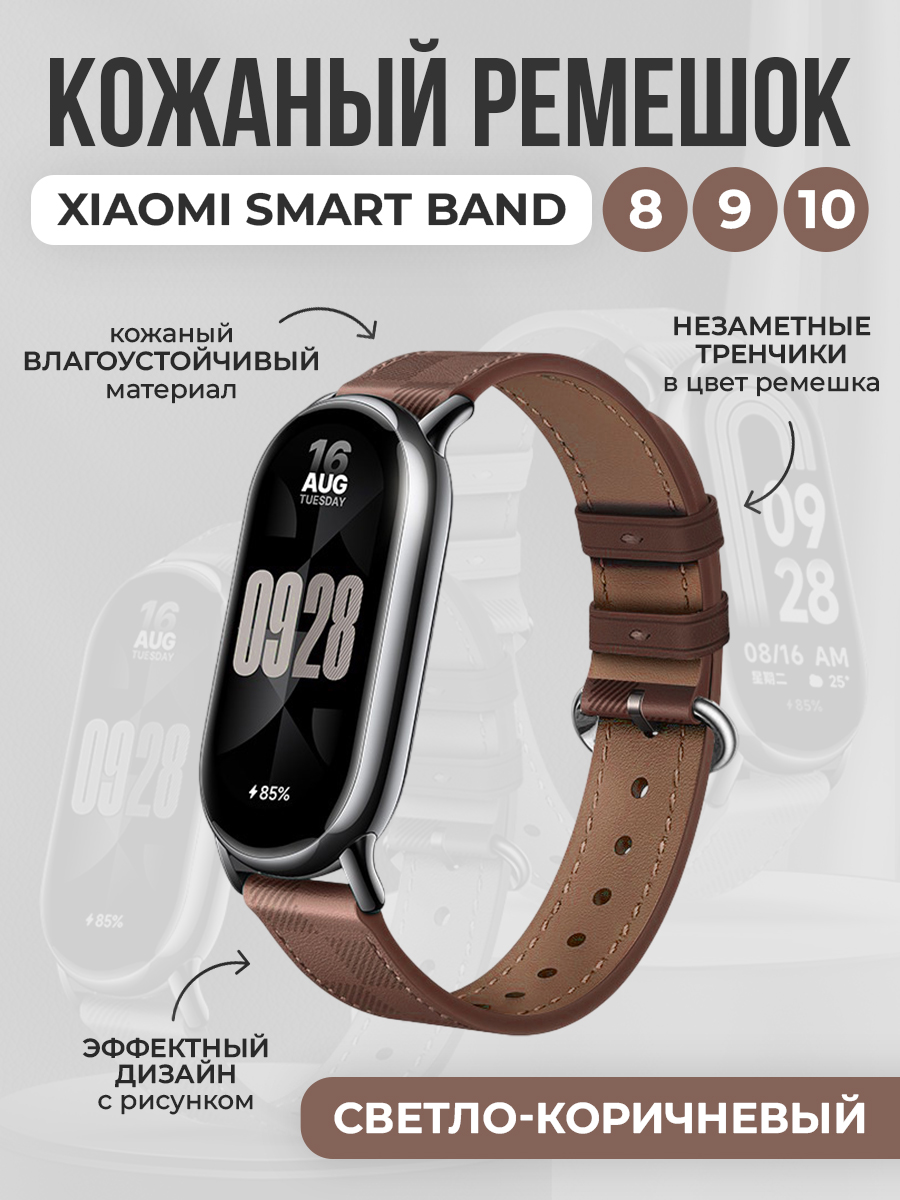 Кожаный ремешок с узором для Xiaomi Smart Band 8/9/10, светло-коричневый