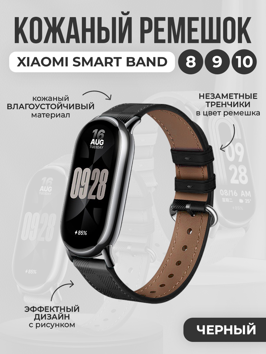 Кожаный ремешок с узором для Xiaomi Smart Band 8/9/10, черный