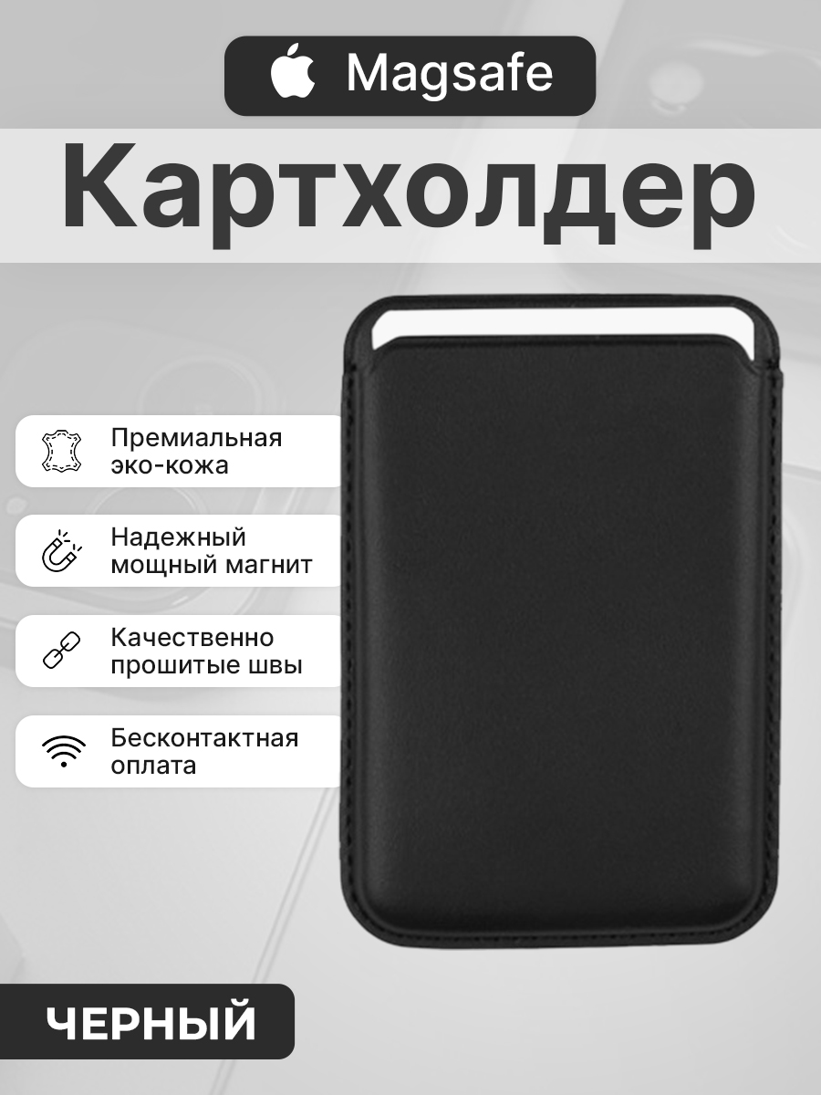 Магнитный картхолдер Magsafe из искусственной кожи для iPhone, черный