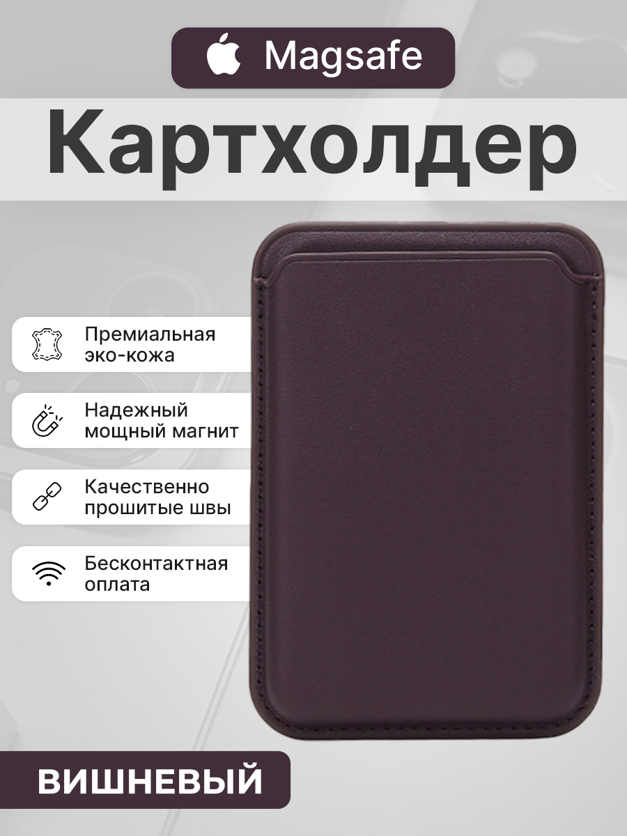 Магнитный картхолдер Magsafe из искусственной кожи для iPhone, вишневый
