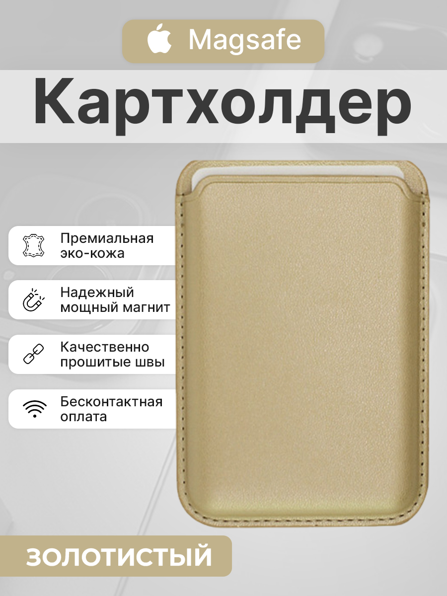 Магнитный картхолдер Magsafe из искусственной кожи для iPhone, золотистый