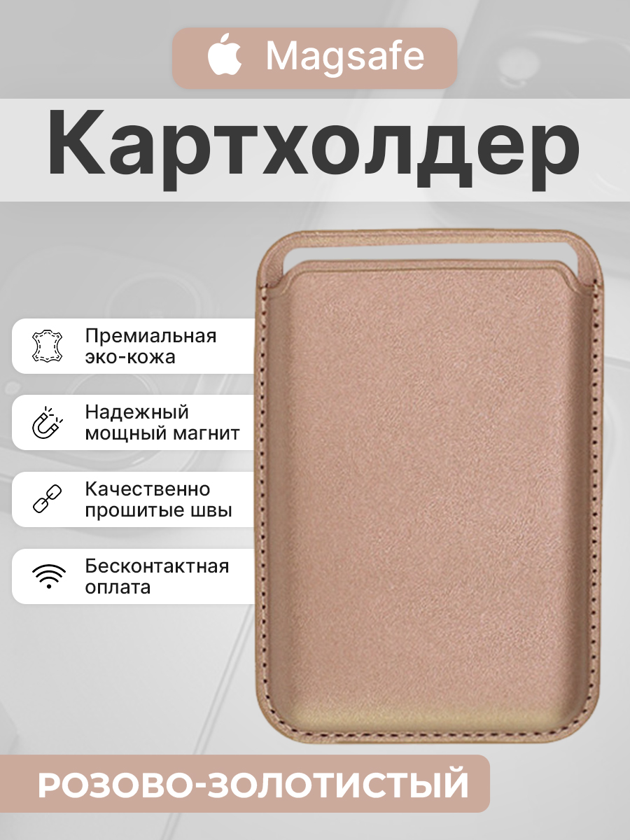 Магнитный картхолдер Magsafe из искусственной кожи для iPhone, розово-золотистый