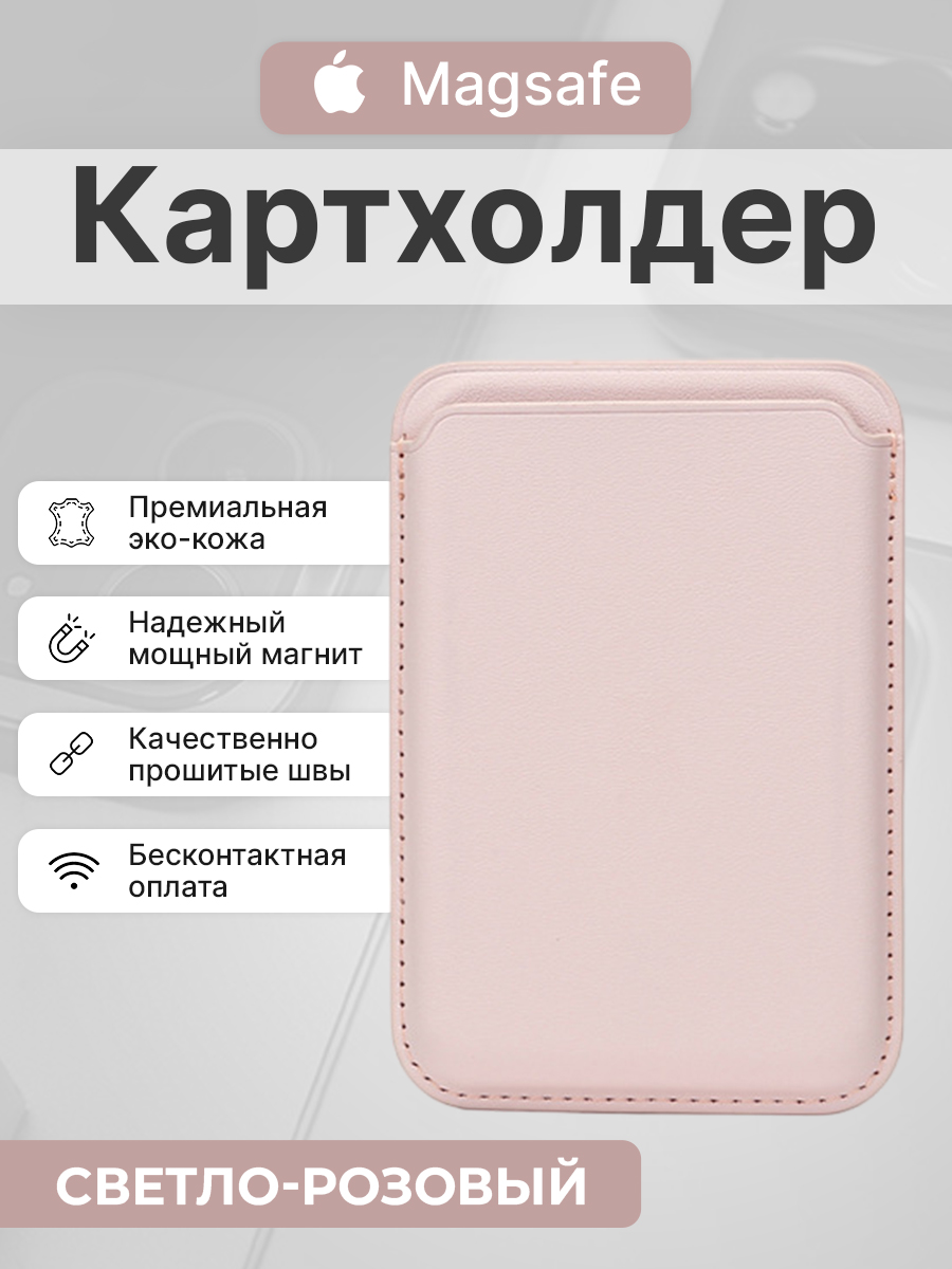 Магнитный картхолдер Magsafe из искусственной кожи для iPhone, светло-розовый