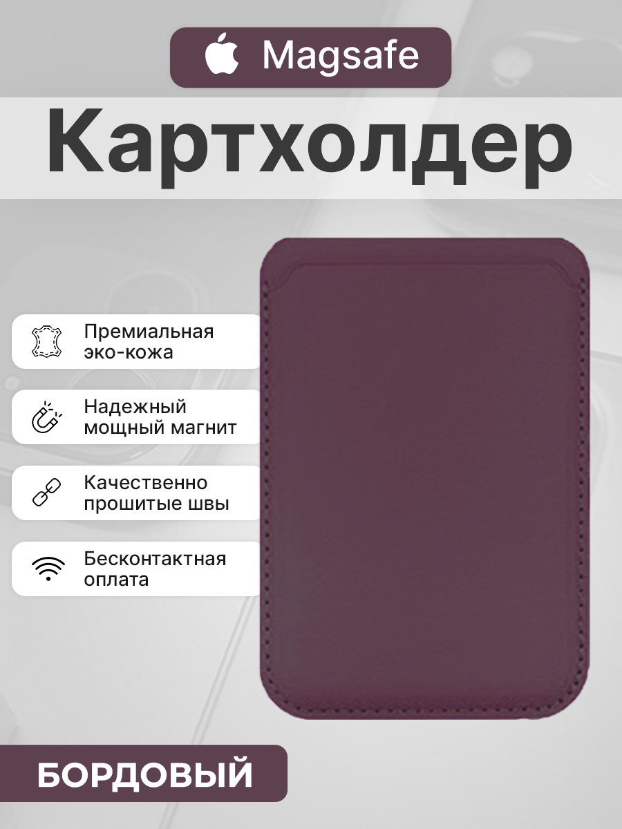 Магнитный картхолдер Magsafe из искусственной кожи для iPhone, бордовый