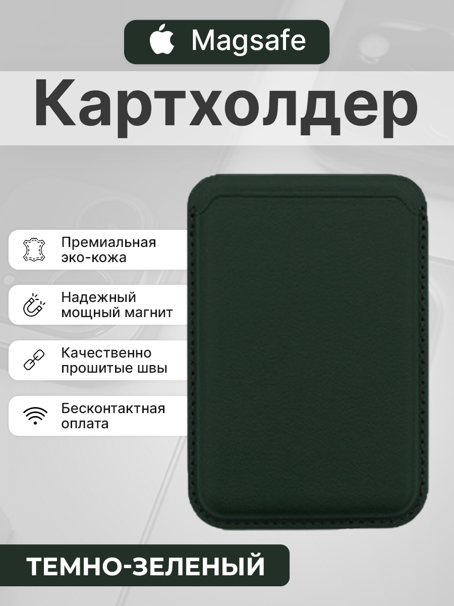Магнитный картхолдер Magsafe из искусственной кожи для iPhone, темно-зеленый