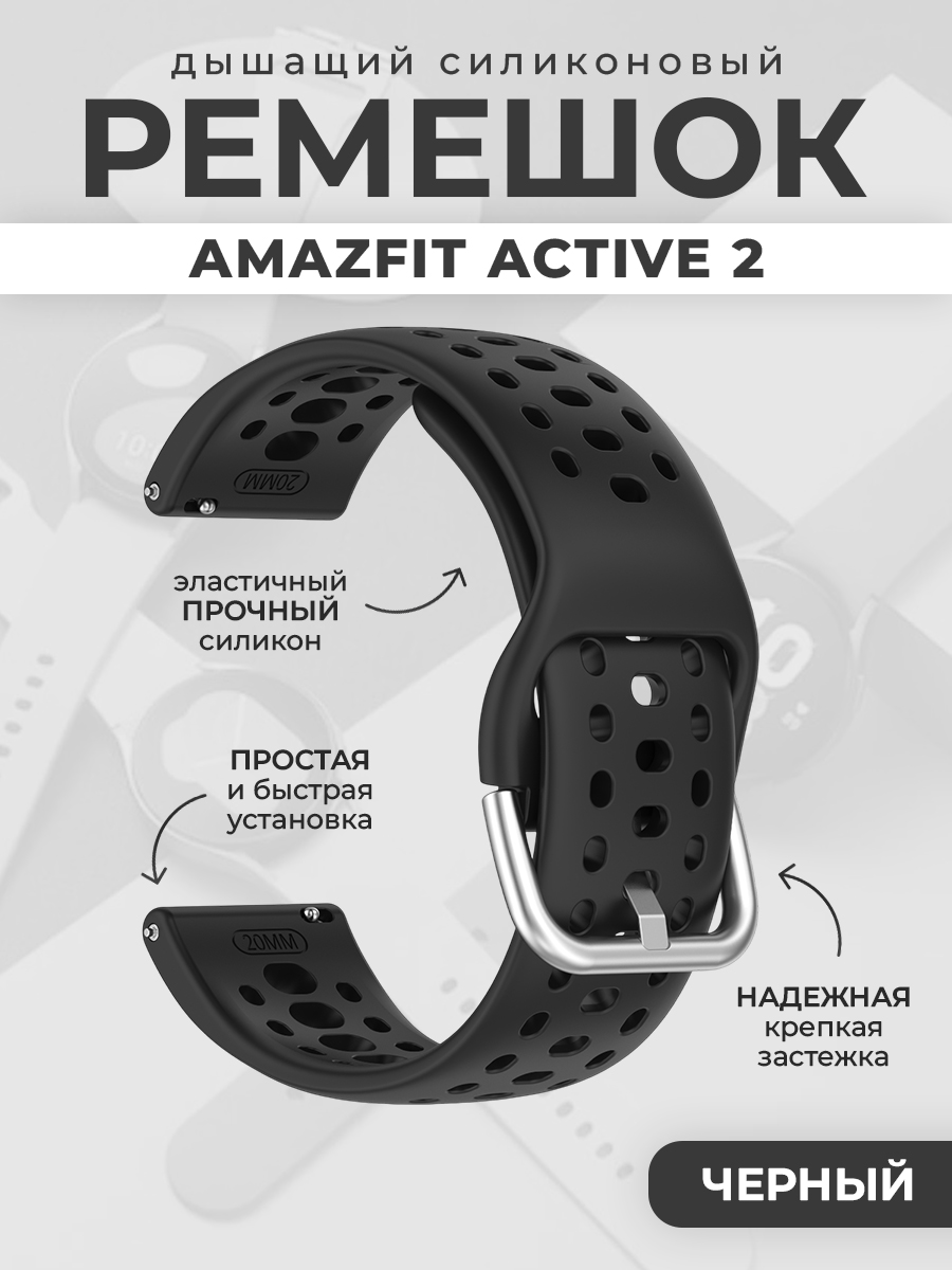 Дышащий силиконовый ремешок для Amazfit Active 2, черный