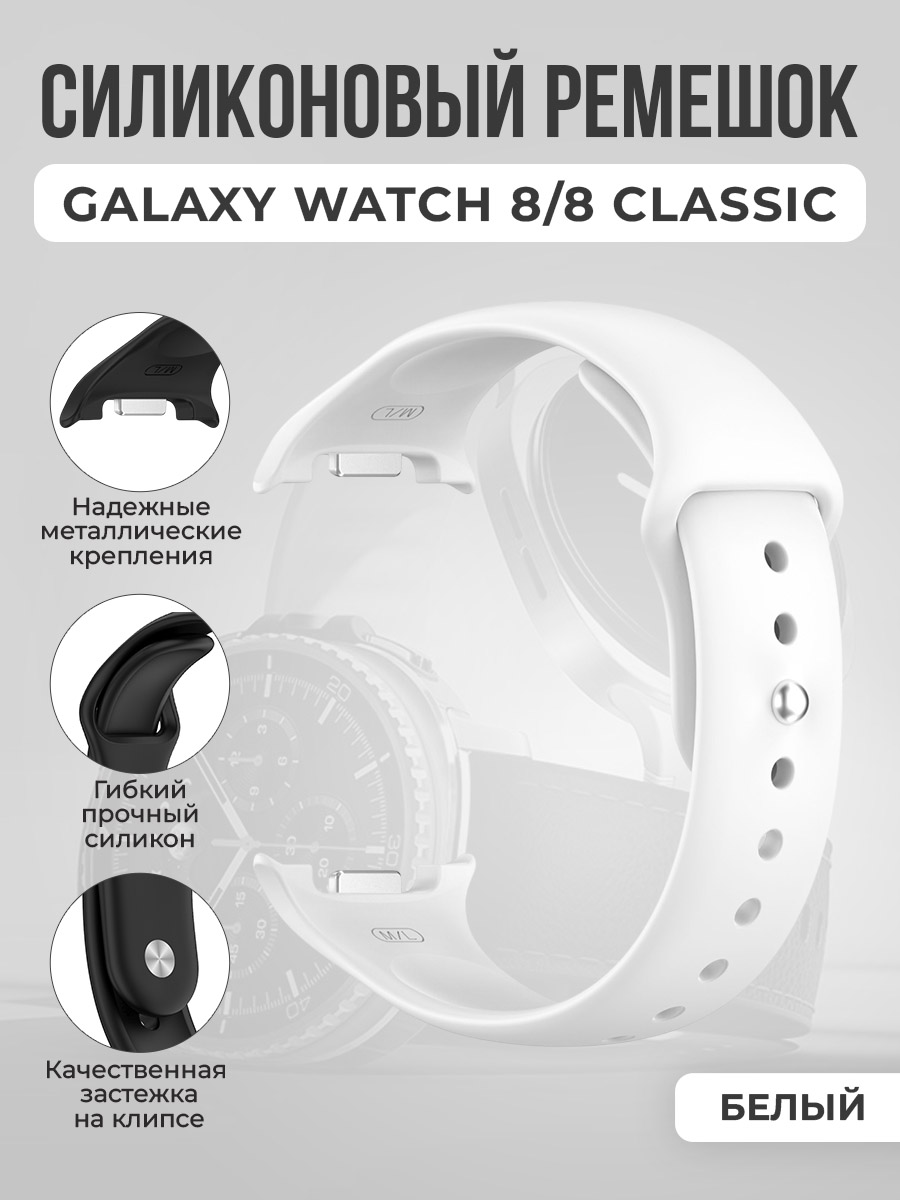 Классический силиконовый ремешок для Samsung Galaxy Watch 8/8 Classic, белый