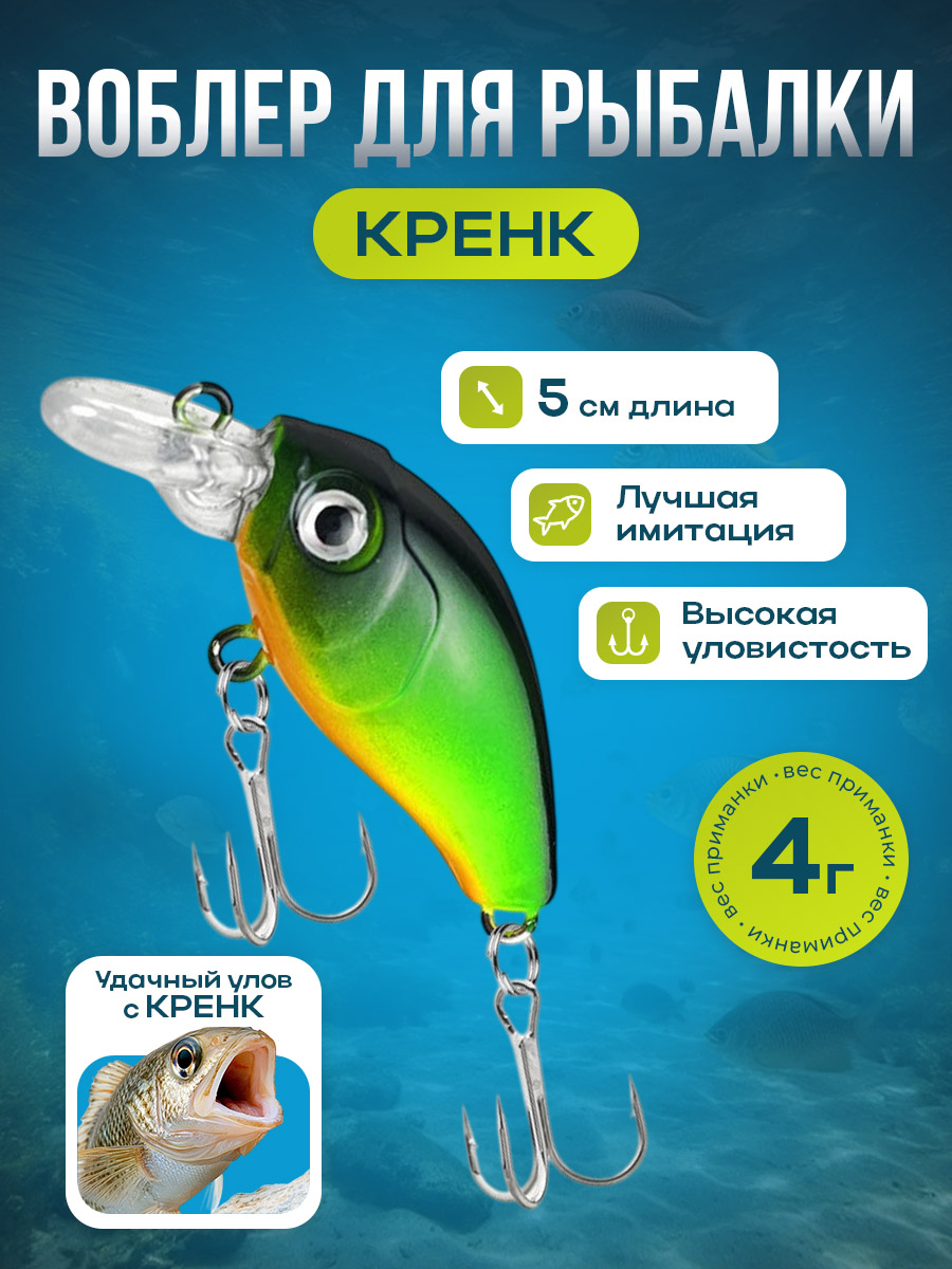 Воблер для рыбалки, 5 см/4 г, черно-зеленая