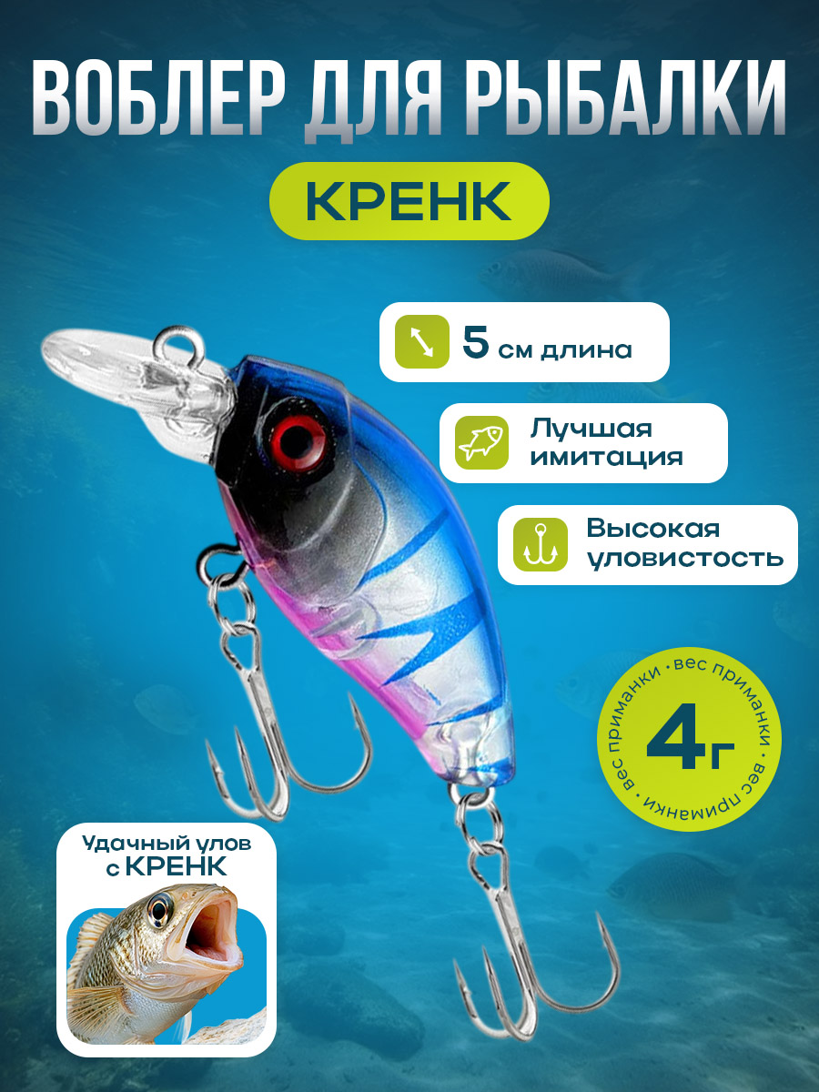 Воблер для рыбалки, 5 см/4 г, сине-розовая