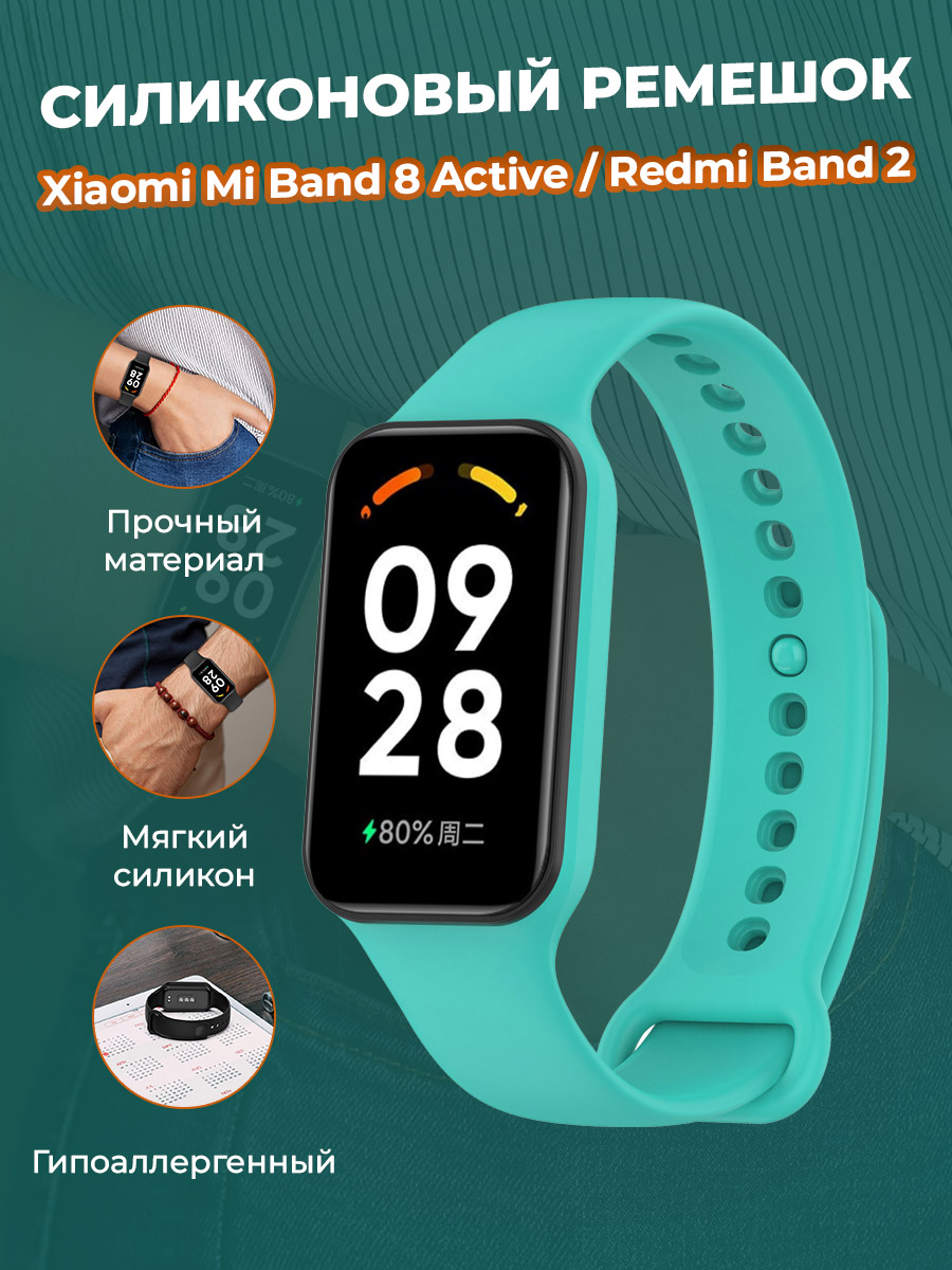Cиликоновый ремешок для Xiaomi Mi Band 8 Active / Redmi Band 2, бирюзово-голубой