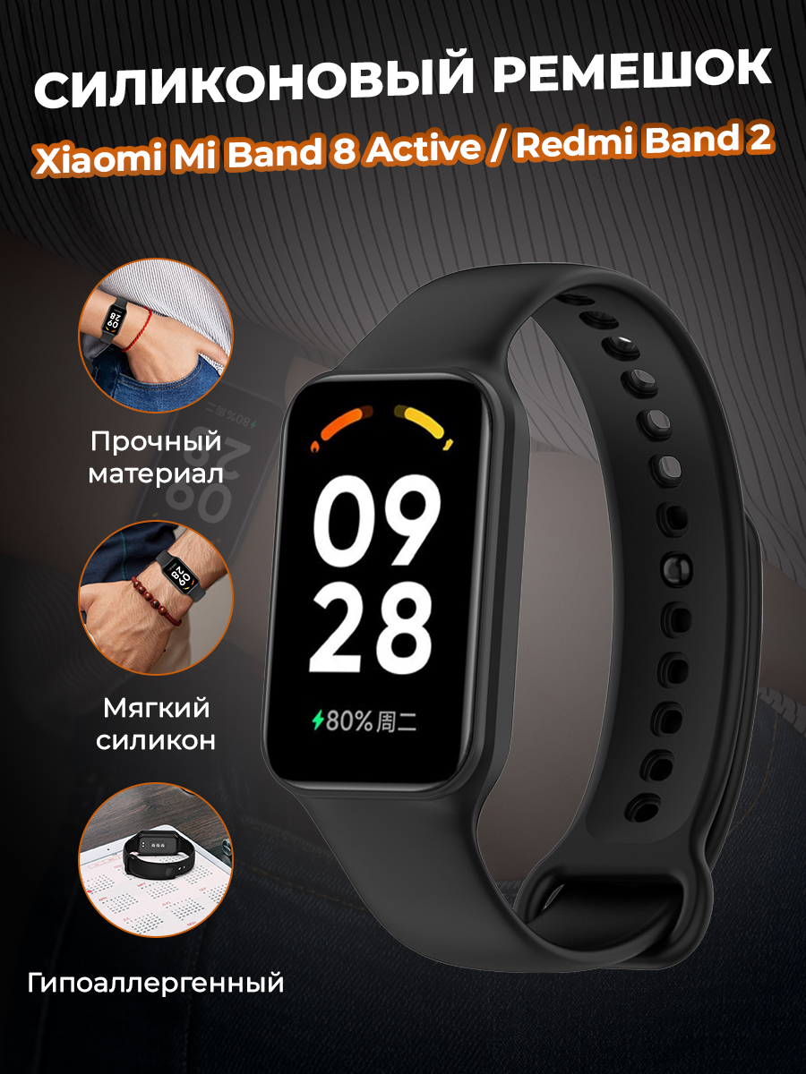 Cиликоновый ремешок для Xiaomi Mi Band 8 Active / Redmi Band 2, черный