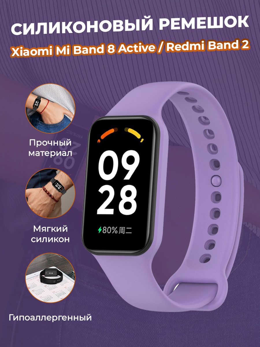 Cиликоновый ремешок для Xiaomi Mi Band 8 Active / Redmi Band 2, лавандовый