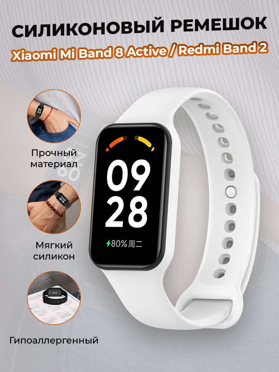 Cиликоновый ремешок для Xiaomi Mi Band 8 Active / Redmi Band 2, белый