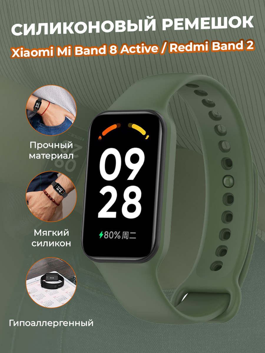 Cиликоновый ремешок для Xiaomi Mi Band 8 Active / Redmi Band 2, темно-зеленый