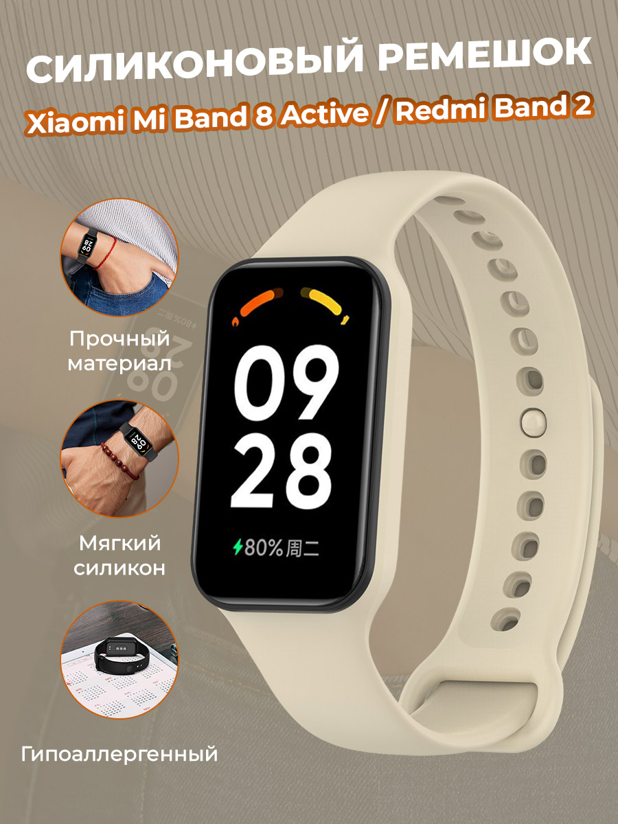 Cиликоновый ремешок для Xiaomi Mi Band 8 Active / Redmi Band 2, слоновая кость