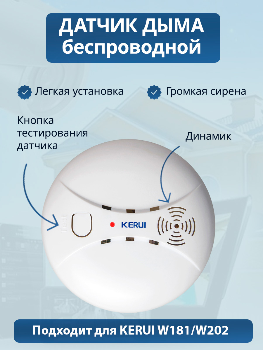 Датчик дыма для охранной сигнализации Kerui W181, белый