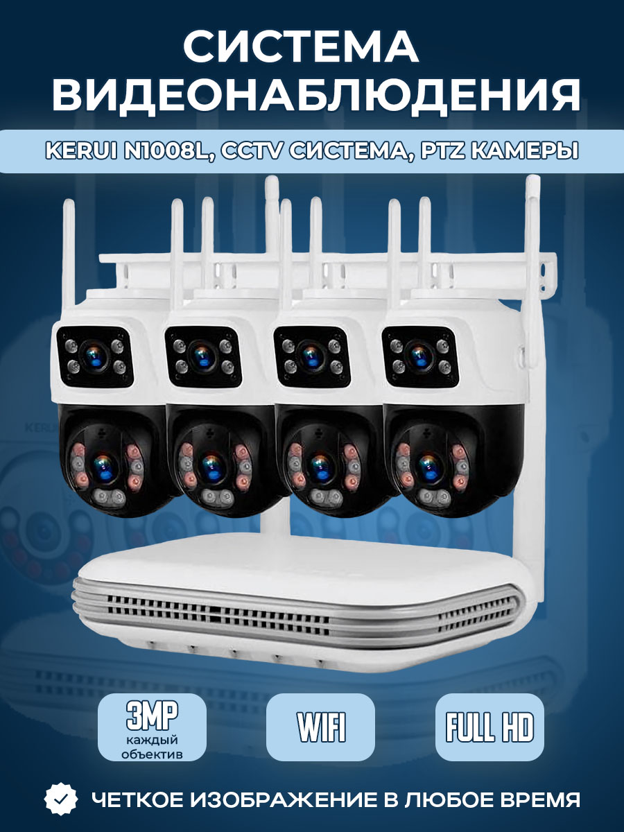 N1008L, CCTV система, PTZ камеры, 4 камеры с двойным объективом по 3 МП, без жесткого диска
