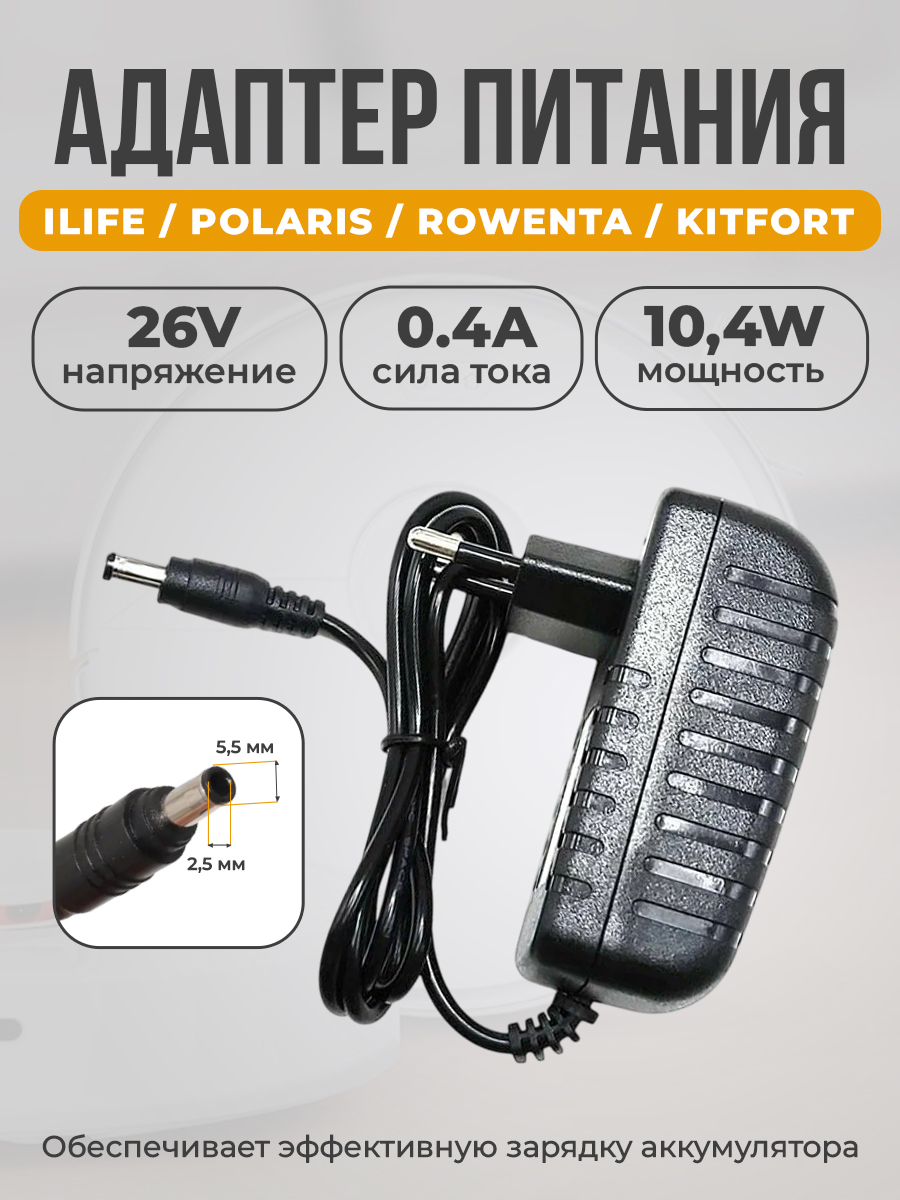 Адаптер питания для Ilife, Polaris, Rowenta, Kitfort, 26V, 0.4 А