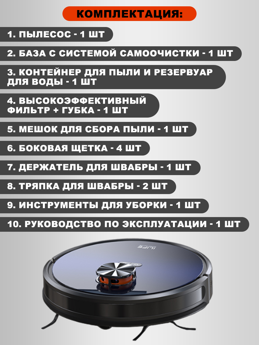 6. Робот-пылесос оснащен голосовым помощником на русском языке, а также управлением через мобильное приложение.