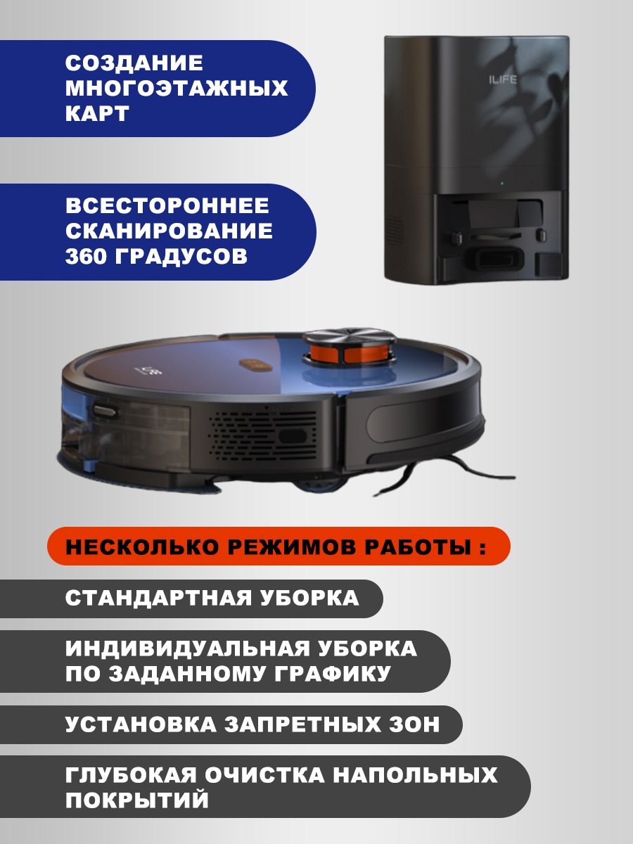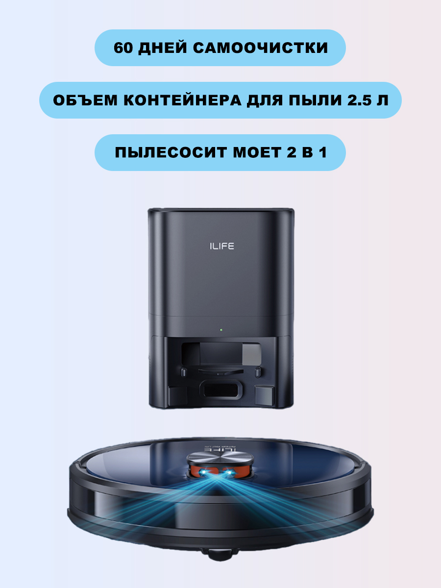 Лазерный робот-пылесос ILIFE T10s для сухой и влажной уборки с станцией самоочистки.