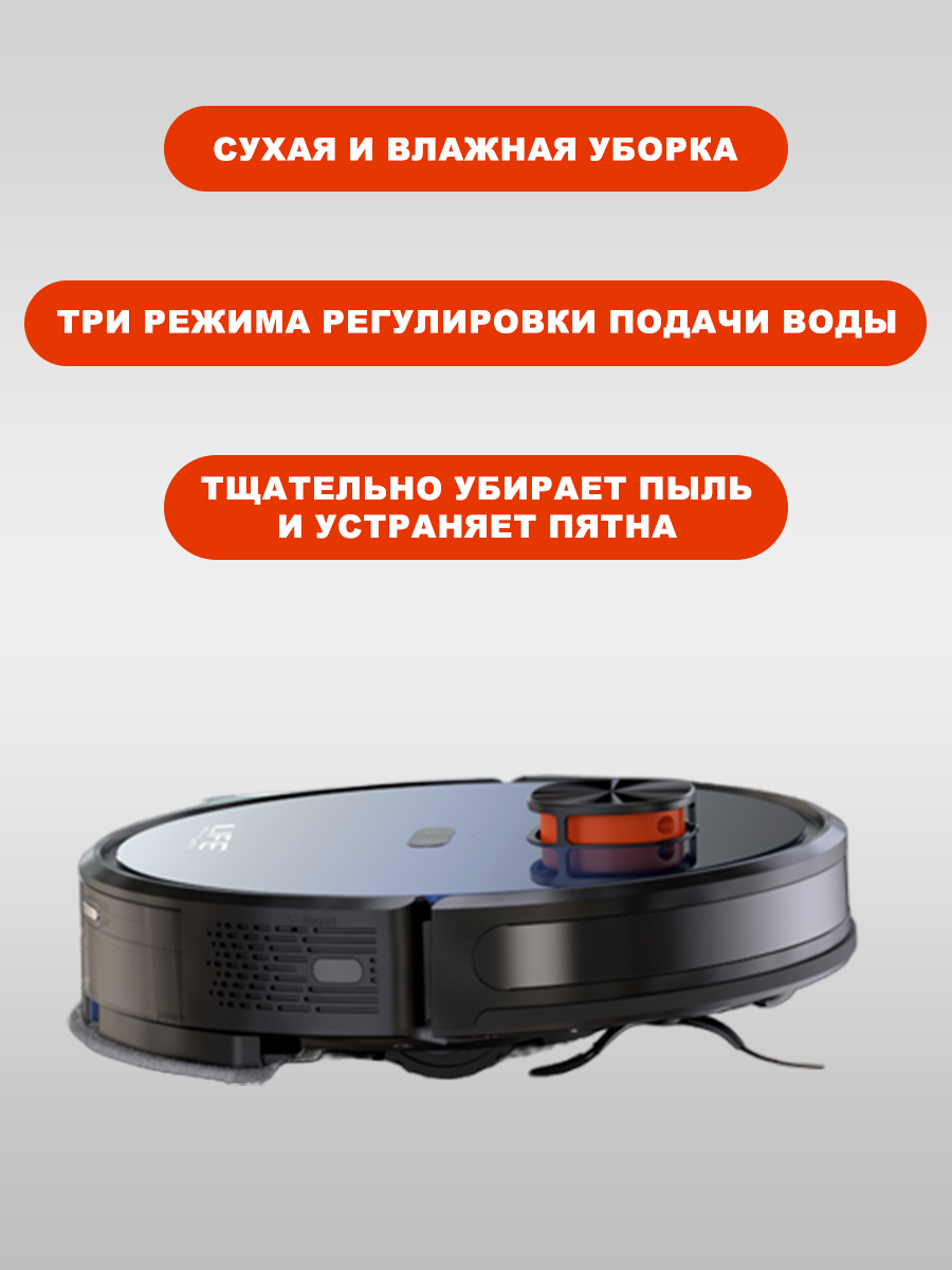 5. 3 режима уборки - одновременная сухая и влажная уборка / сухая уборка / влажная уборка - выбирайте то, что нужно именно сейчас. Также вы можете выбрать один из 3 типов мощности выделения воды во время влажной уборки.