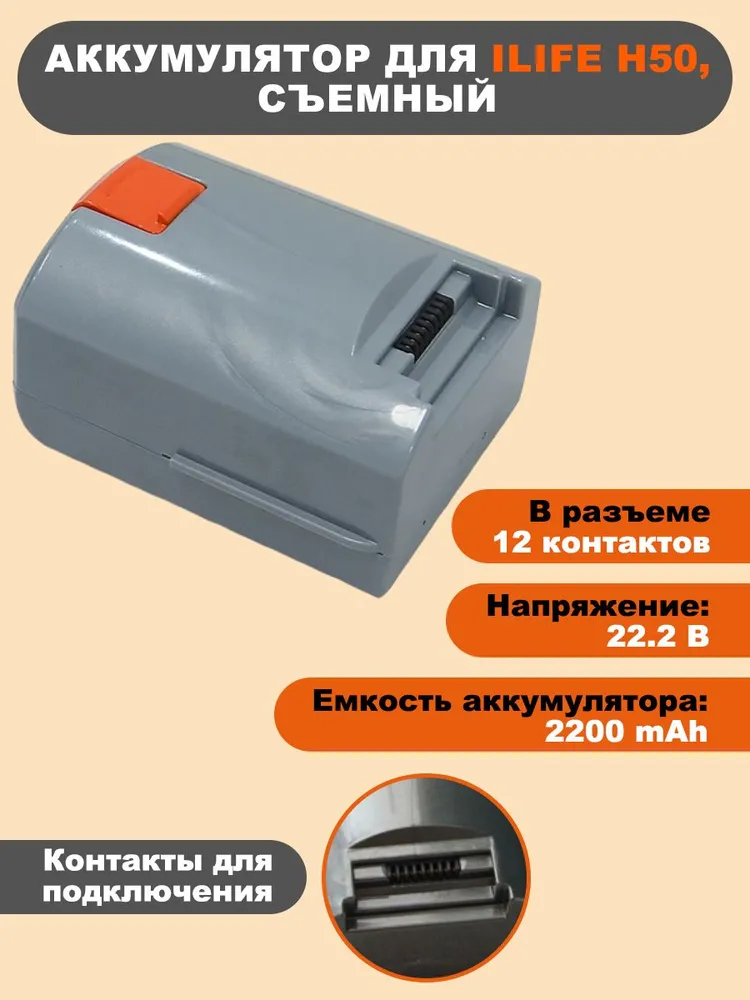 Съемный аккумулятор для пылесоса ILIFE H50 (для других моделей не подойдет). Напряжение: 22.2 В. Емкость аккумулятора: 2200 mAh.