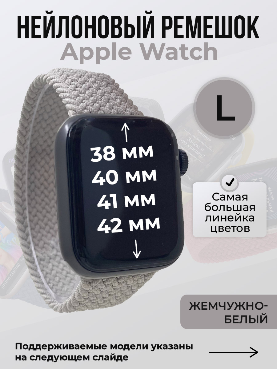 Нейлоновый ремешок для Apple Watch 1-9/SE/SE2/SE3 (38/40/41 мм), 10/11/S10/S11, 42 мм, без застежки, жемчужно-белый, размер L