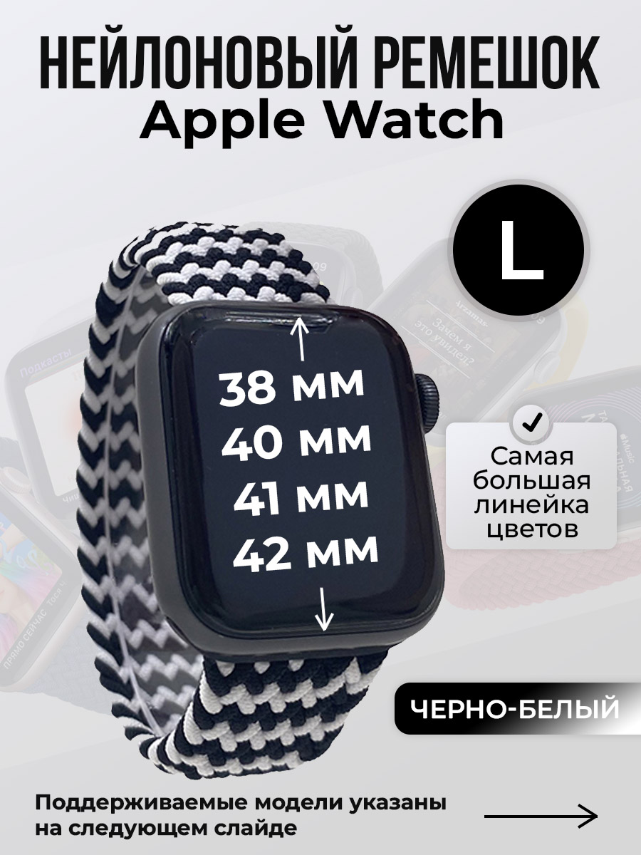 Нейлоновый ремешок для Apple Watch 1-9/SE/SE2/SE3 (38/40/41 мм), 10/11/S10/S11, 42 мм, без застежки, черно-белый, размер L