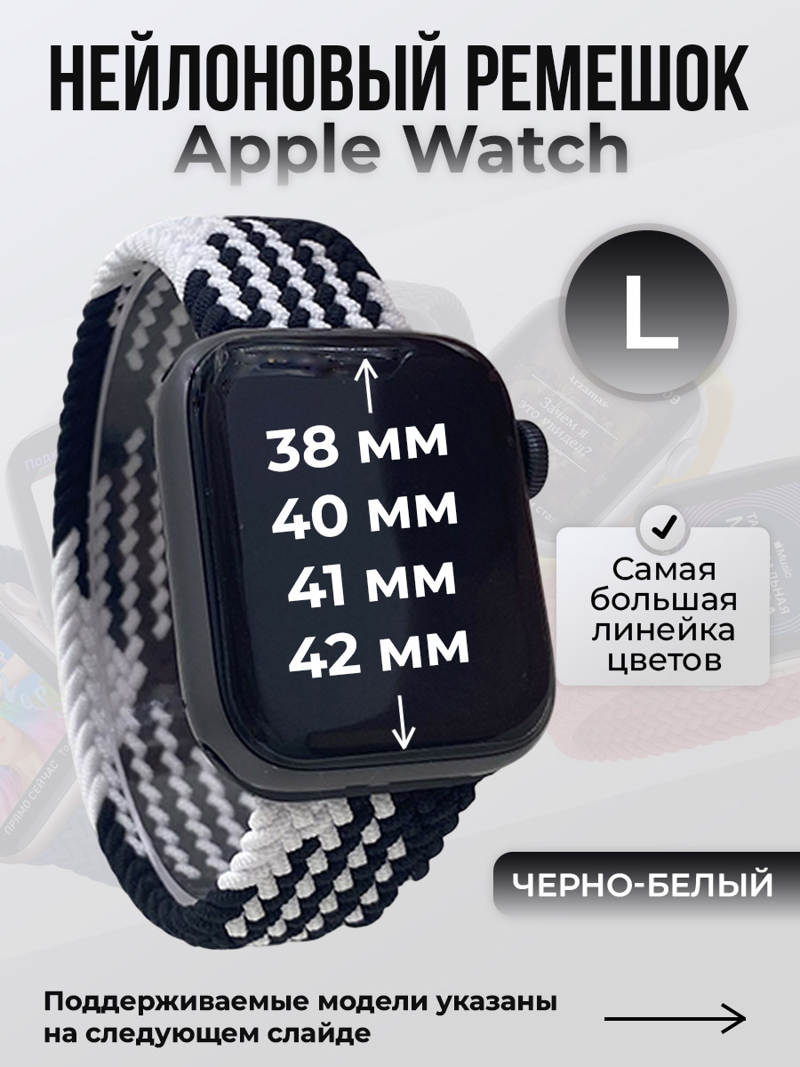 Нейлоновый ремешок для Apple Watch 1-9/SE/SE2/SE3 (38/40/41 мм), 10/11/S10/S11, 42 мм, без застежки, черно-белый, размер L