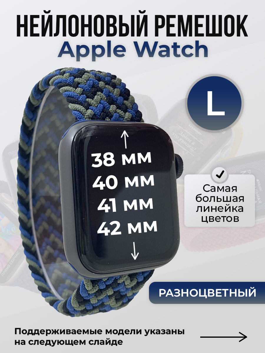 Нейлоновый ремешок для Apple Watch 1-9/SE/SE2/SE3 (38/40/41 мм), 10/11/S10/S11, 42 мм, без застежки, разноцветный, размер L | Низкие цены